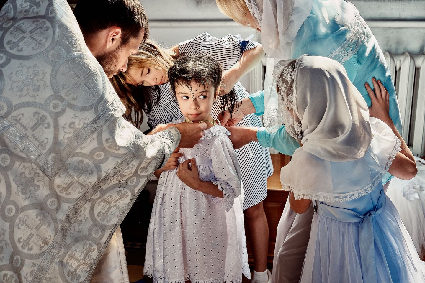 Крестилася еси. Просветилася еси. Миропомазалася еси. Освятилася еси. Омылася еси: во имя Отца, и Сына, и Святаго Духа, аминь.